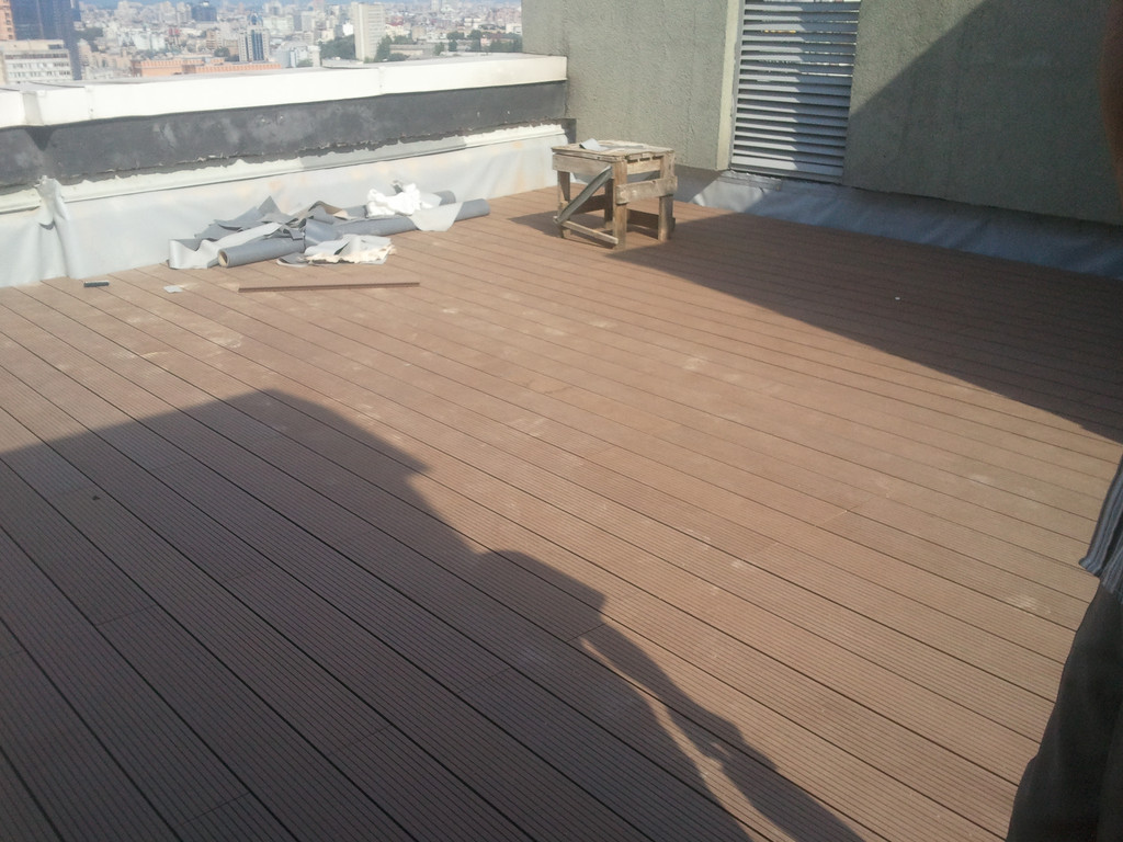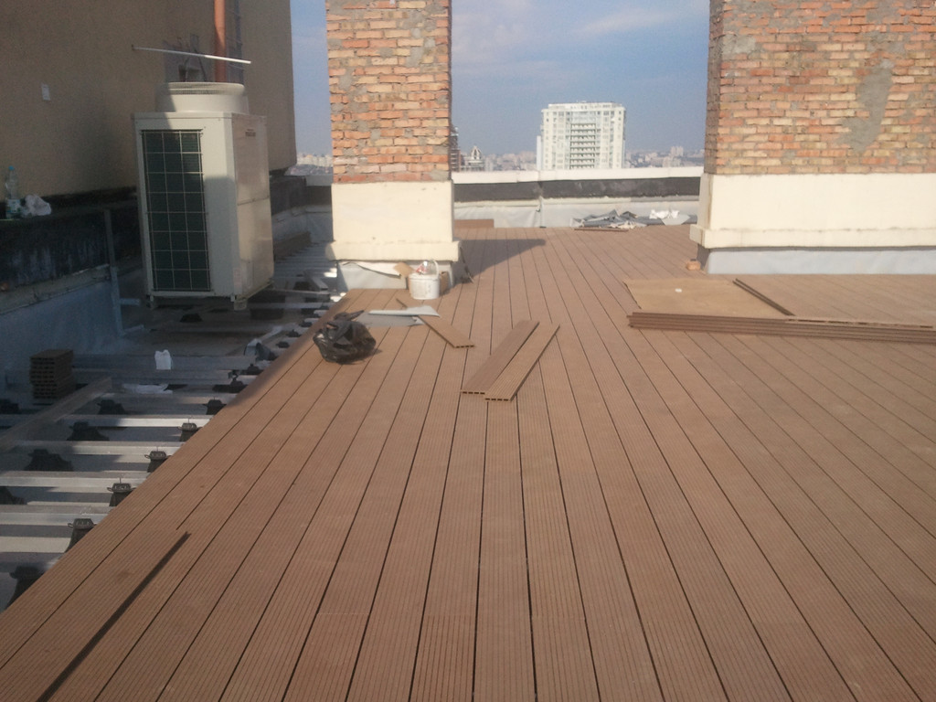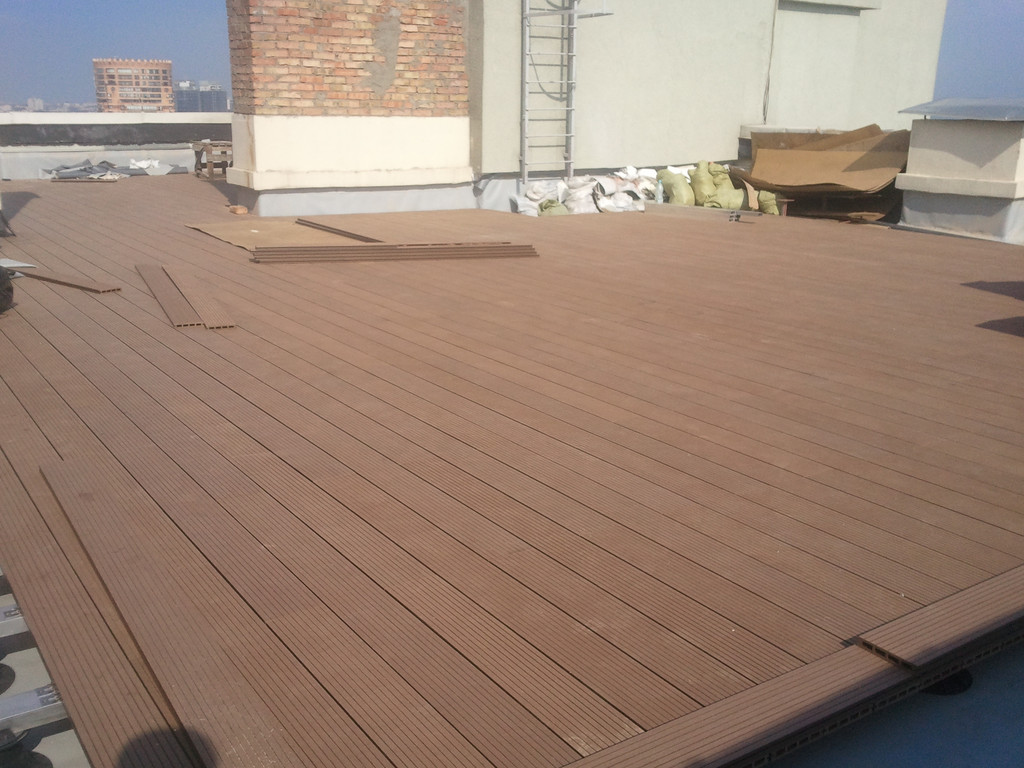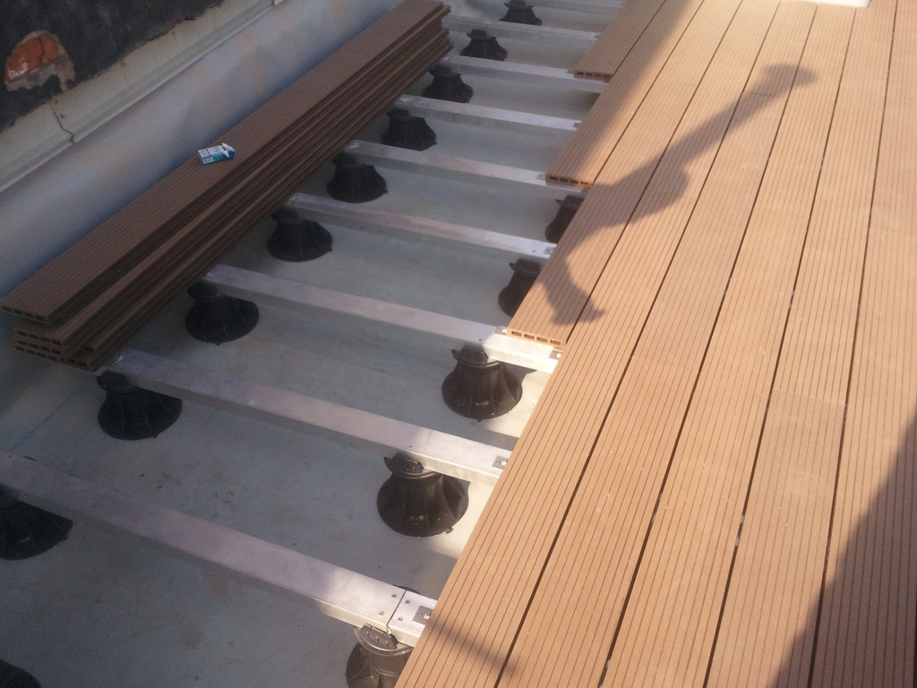 Для забора и террасы, была использована террасная доска SunDeck (Турция). Монтаж производился на алюминиевые лаги с регулируемыми опорами