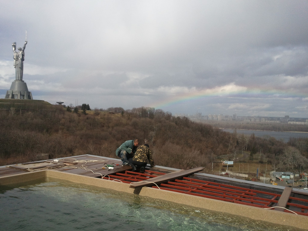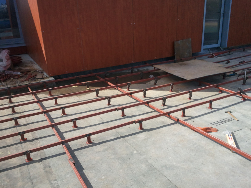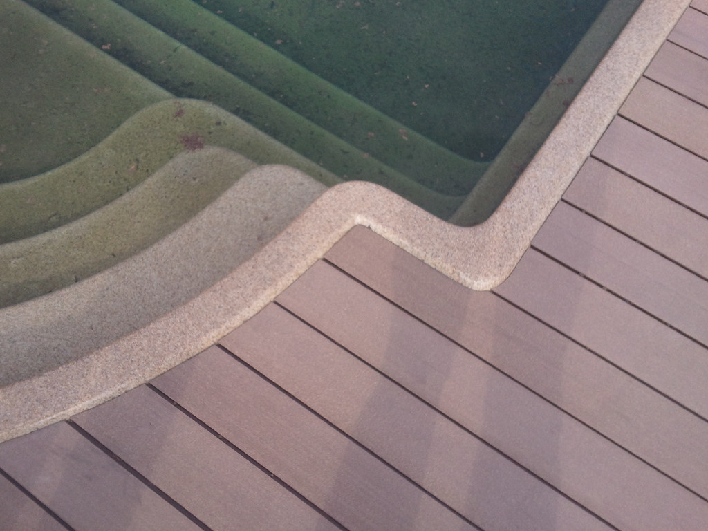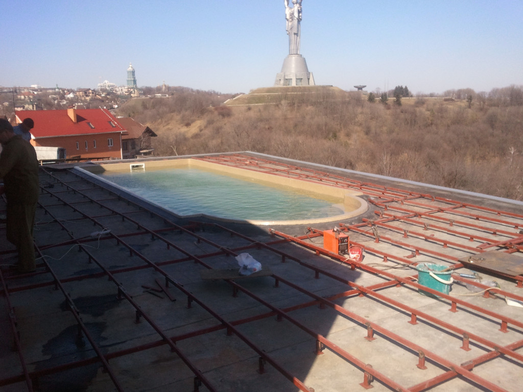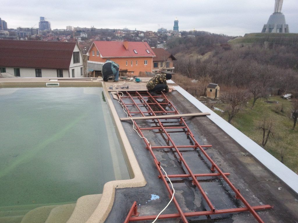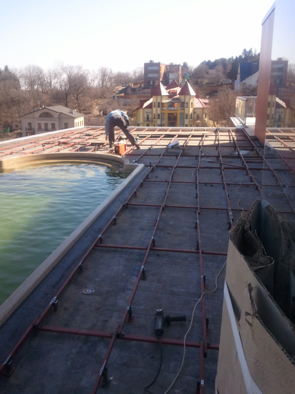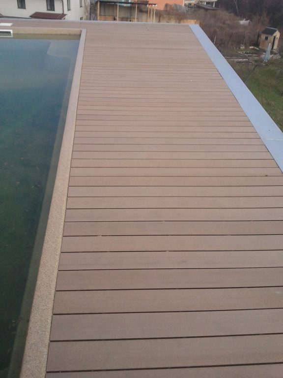 Терраса вокруг бассейна на крыше, монтаж на метало-каркас. Террасная доска Werzalit (Германия).