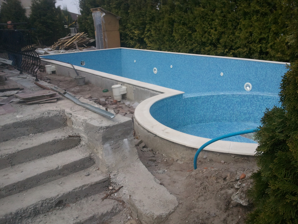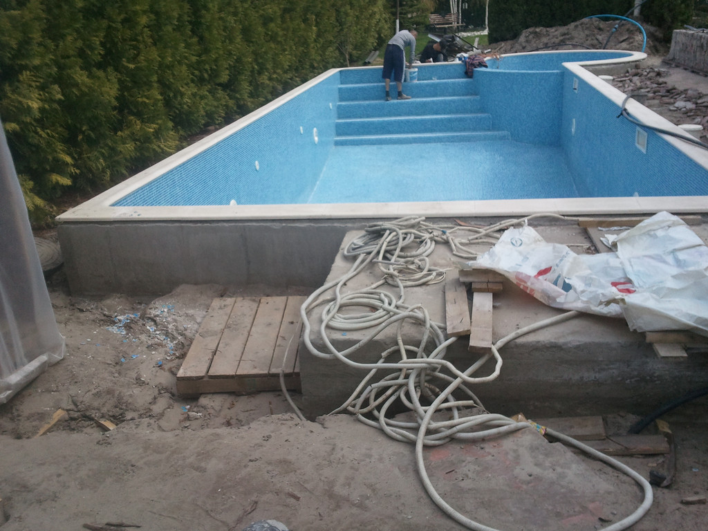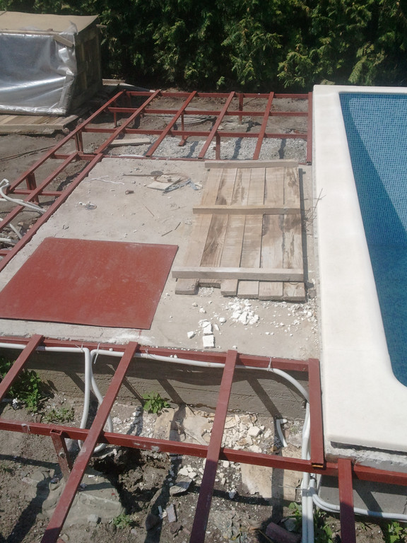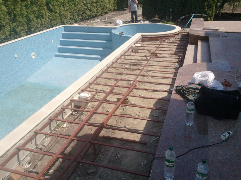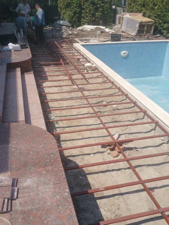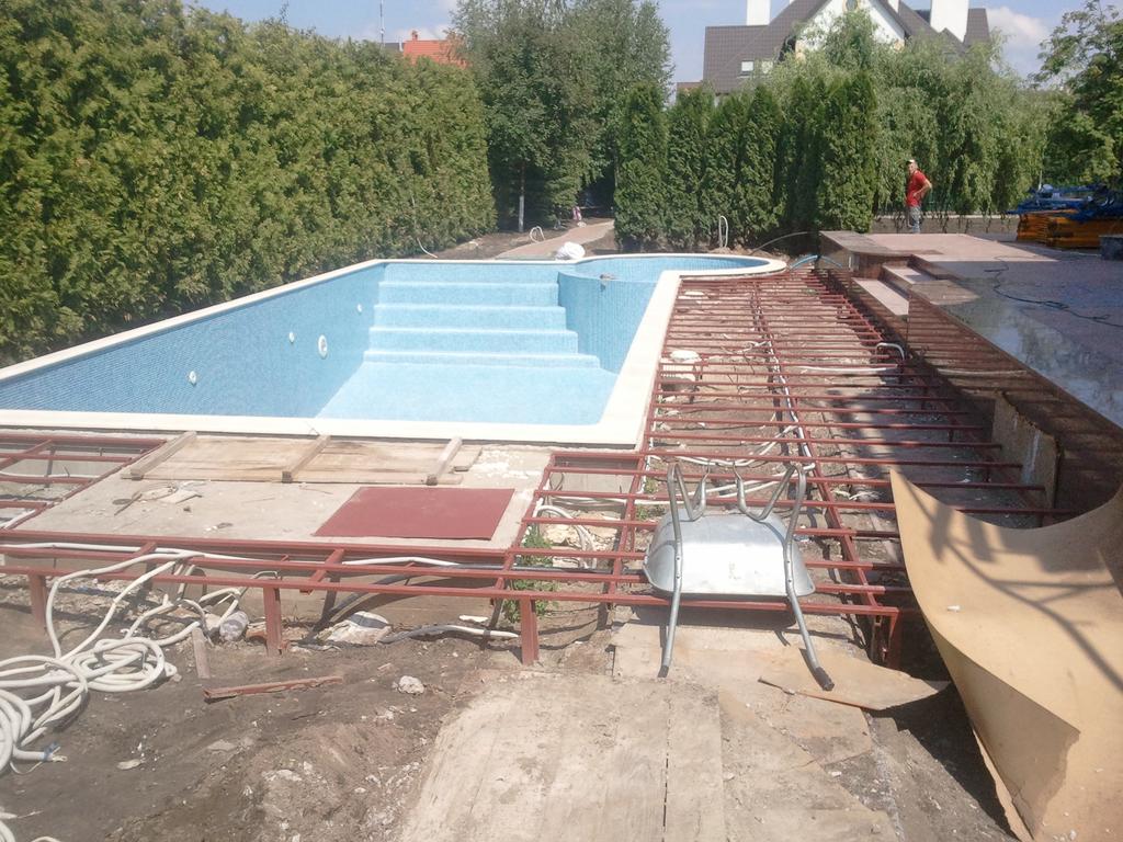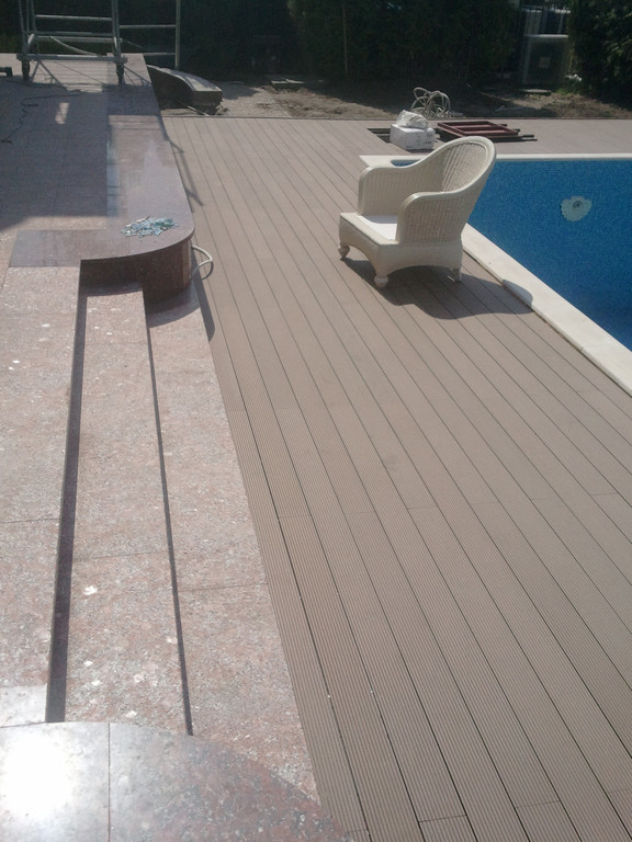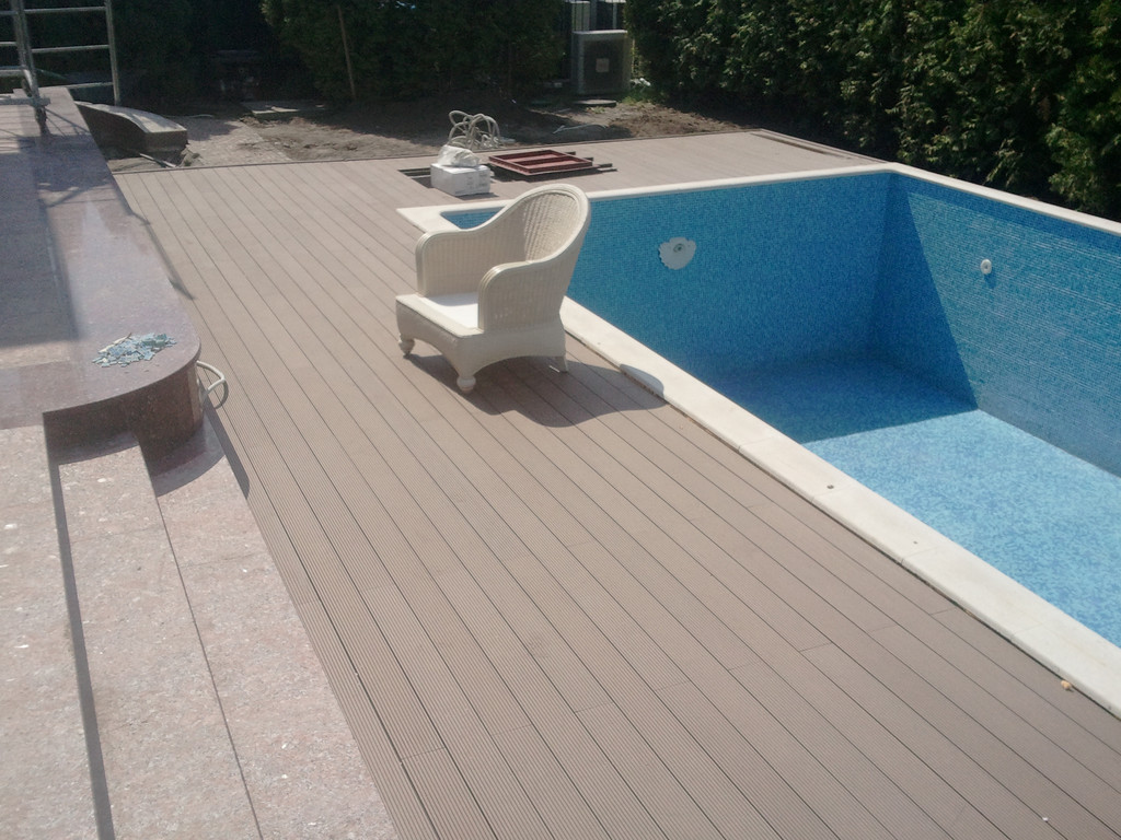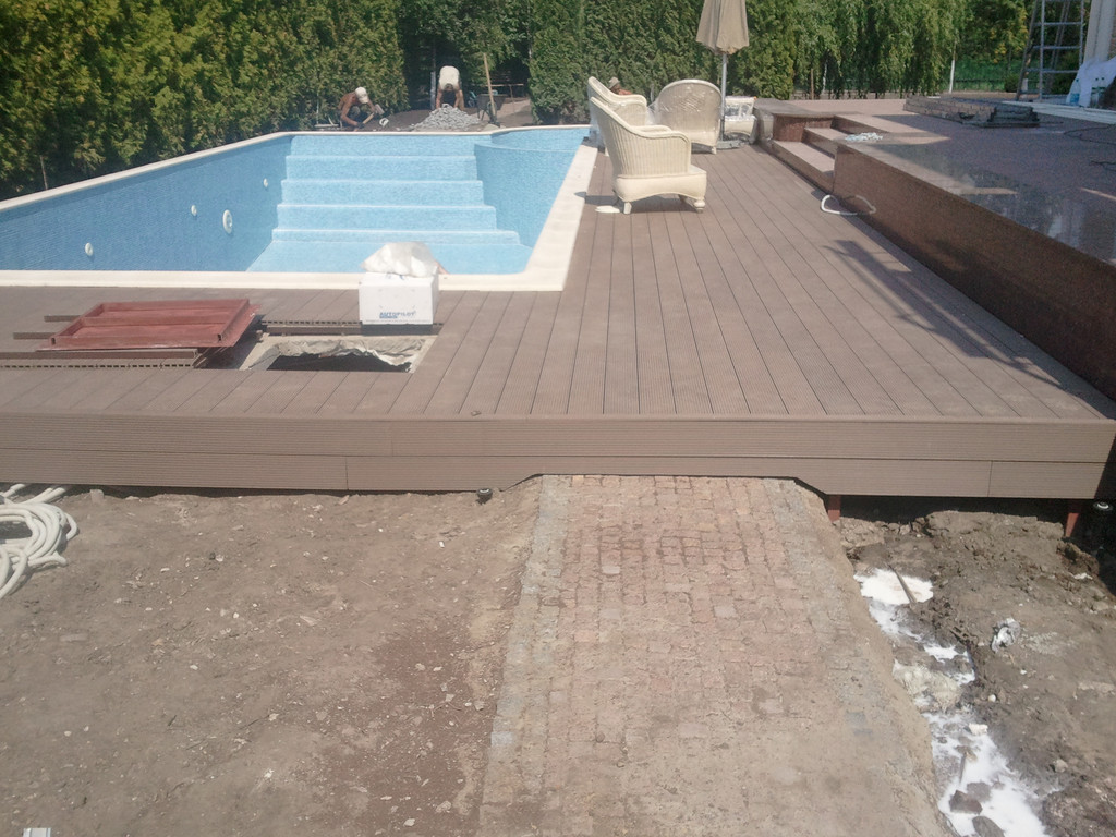 Отделка площадки вокруг бассейна, террасная доска Bruggan (Бельгия).